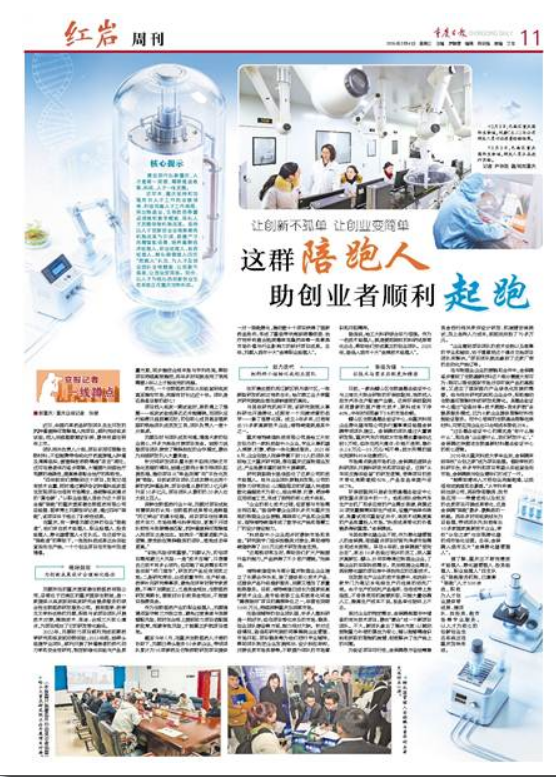 2月4日,重庆日报第11版以《让创新不孤单 让创业变简单 这群“陪跑人”助创业者顺利起跑》为题,对巴南区集聚“陪跑”人才,为人才创业提供专业服务进行报道。